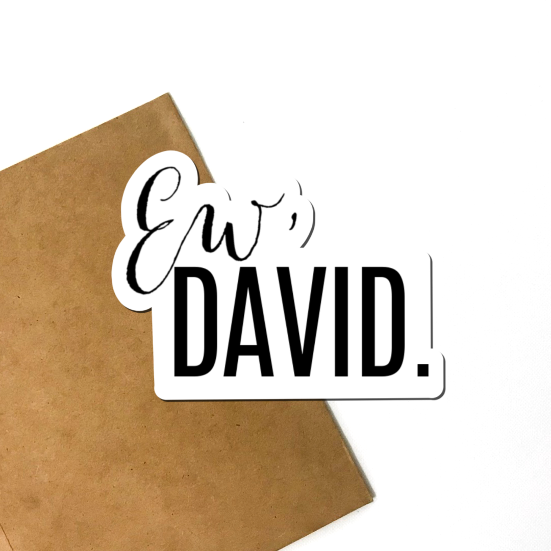This Ew David Vinyl Sticker is perfect to decorate your laptop, hydro flask, cell phone, or to use in your bullet journal or planner. So go ahead and show off your love of the Roses with this cute sticker. Or just gift it to a loved one who loves every time Alexis screams, "Ew, David," to her brother.