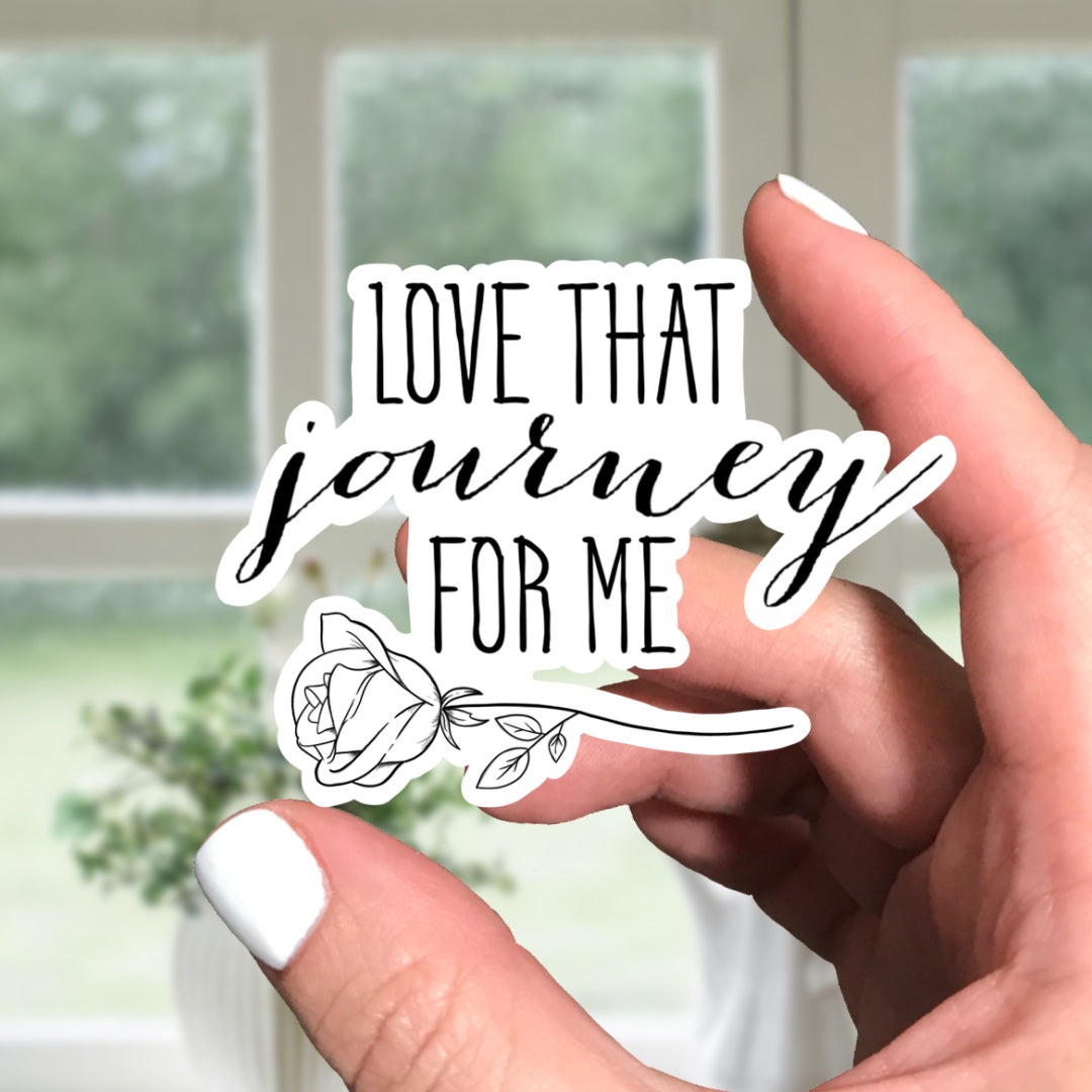 This Love That Journey For Me Vinyl Sticker is perfect to decorate your laptop, hydro flask, cell phone, or to use in your bullet journal or planner. So go ahead and show off your love of the Schitt's Creek with this cute sticker. Made of Weatherproof vinyl that will leave you with durable decor.